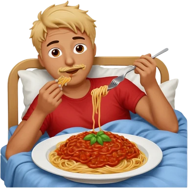 Man in bed eating spaghetti emoji