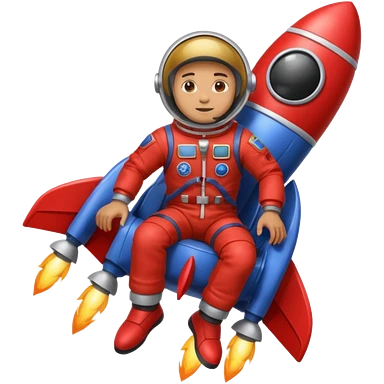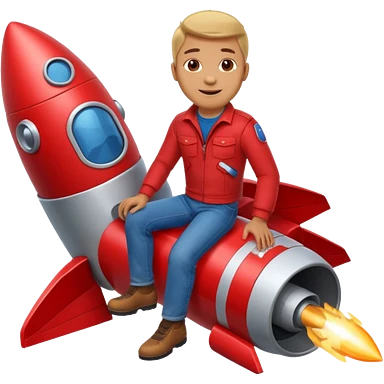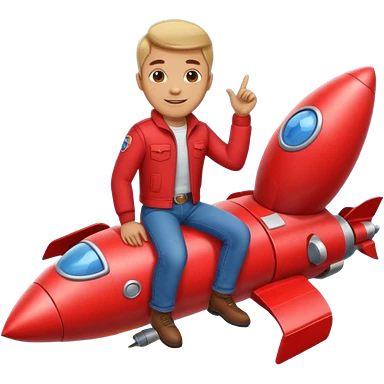 man with red clothes and blue yeanse. sitting on a rocket emoji