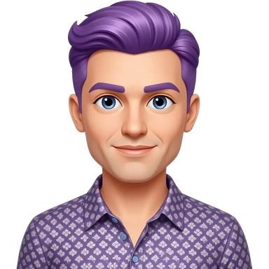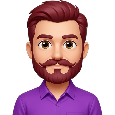 man with square face shape wear a vibrant purple shirt and spice hairs mehroon color and long mustache emoji