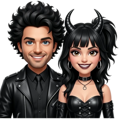 Man and woman with evil expressions smiles and funky black hairstyles and gothic leather clothes emoji