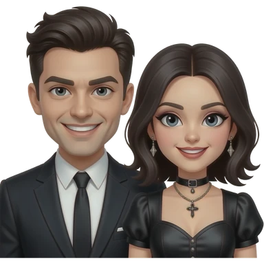 Man and woman with evil expressions smiles and funky hairstyles and gothic attire emoji