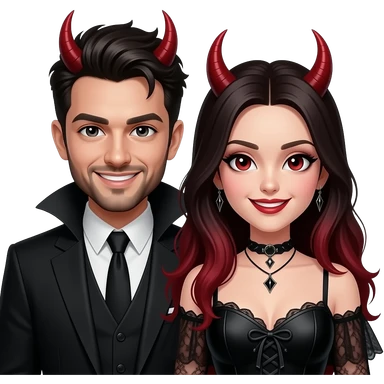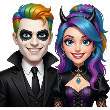 Man and woman with evil devilish expressionssmiles and funky hairstyles and gothic attire emoji