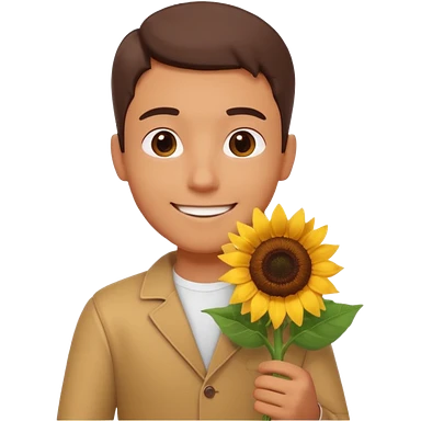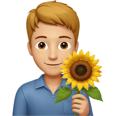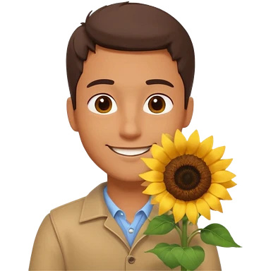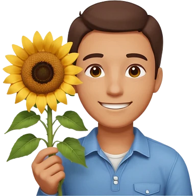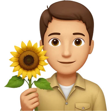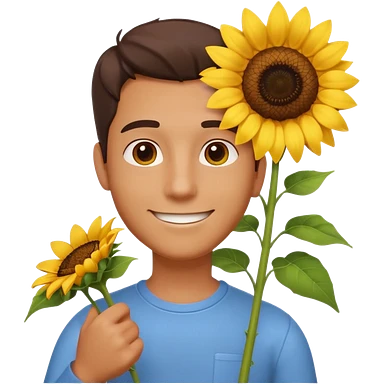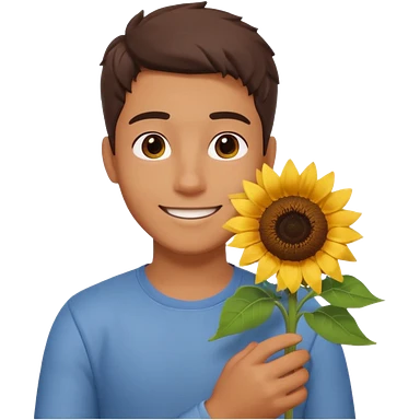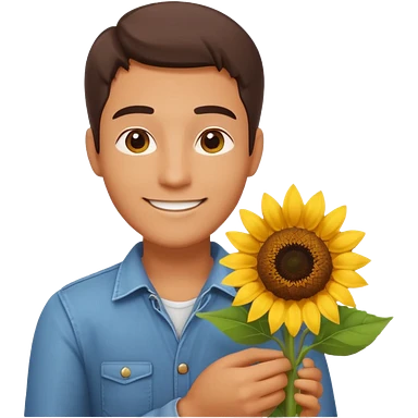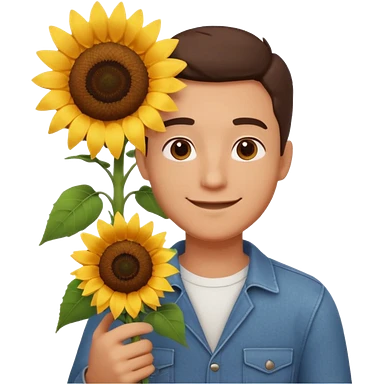man holding a sunflower portrait, head and shoulders only, gentle smile, sunflower visible in hand, warm positive vibe, 3D cartoon style, mobile game icon style, clean background, no text, no watermark emoji