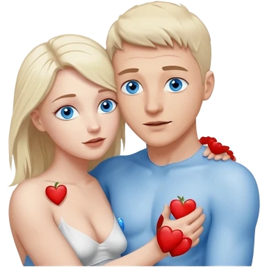 White Man blue eyes and white woman blue eyes having sex naked, putting dick inside her vagina emoji