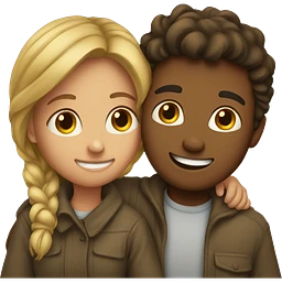 young Métis man and young white woman hugging, love, the woman has long dark hair and green eyes emoji