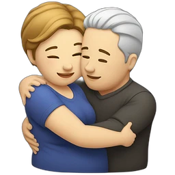 caucasian bald man and a caucasian woman with long curly dark hair hugging emoji