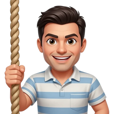 Dark haired man with mischievous face and gothic holding thick rolled uprope emoji