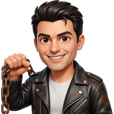 A confident man with black hair, a charming smile, and a stylish outfit. He stands with a relaxed posture, winking at someone, exuding an air of charm and charisma. His appearance is well-groomed, and he gives off a confident yet mischievous vibe, with one eye closed in a playful wink emoji