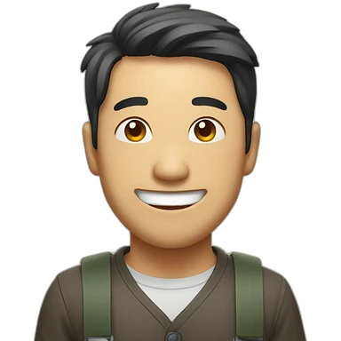Asian man with short black hair, friendly smile, Josh Lim character emoji