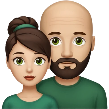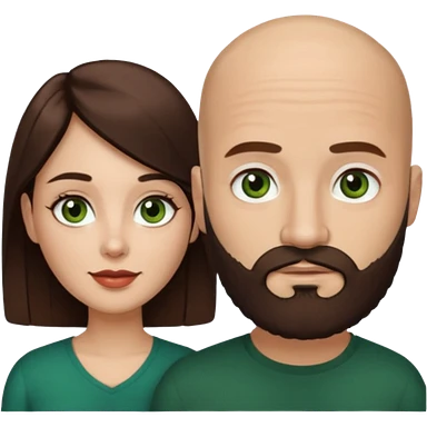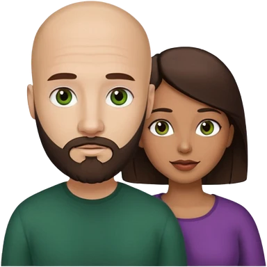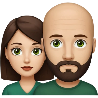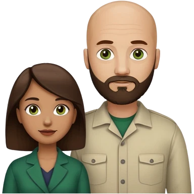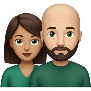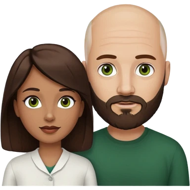 Married couple, man bald, brown beard, man green eyes, woman dark curly hair, light brown eyes emoji