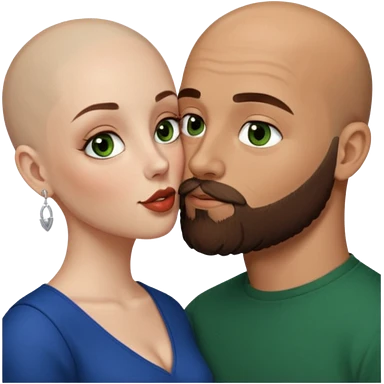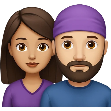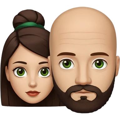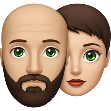 Man beard bald white dark green eyes, woman medium hair brown brown eyes latina emoji | AI Emoji Generator