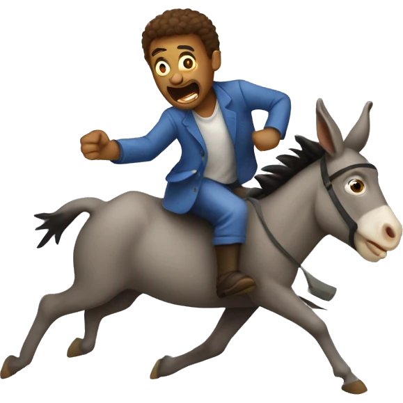 A smiley emoji with arms and legs being chased by 2 rabbits emoji