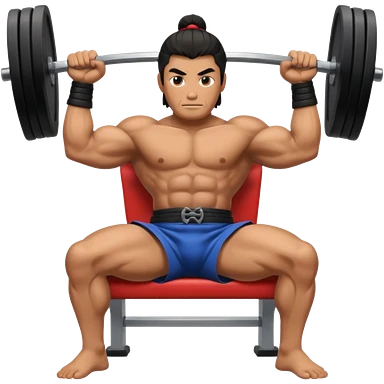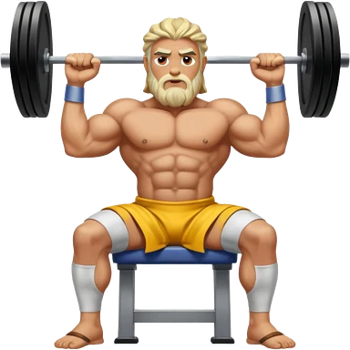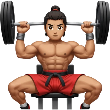 brown muslim man pushing weight wearing thobe on bench press emoji