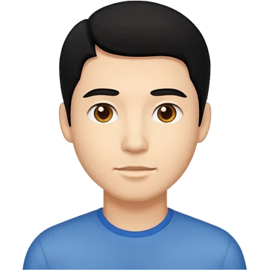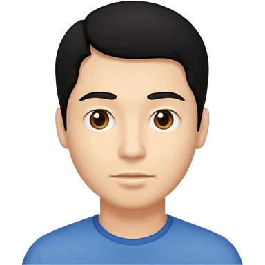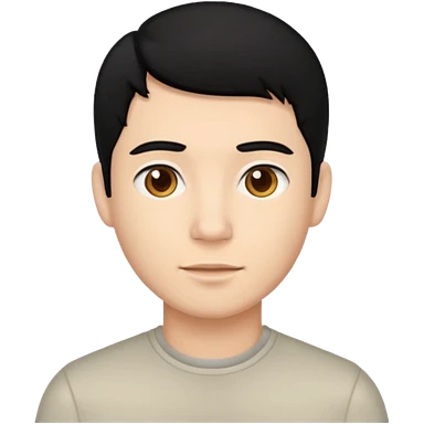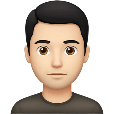 A young man with light skin tone, short wavy black hair parted to the side, large brown eyes, and a neutral expression with a small closed-mouth smile. emoji
