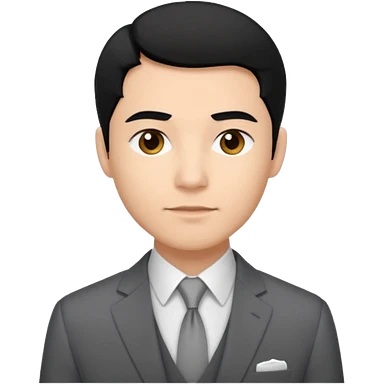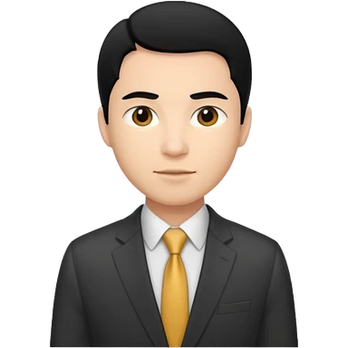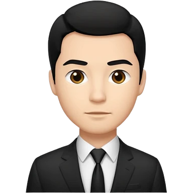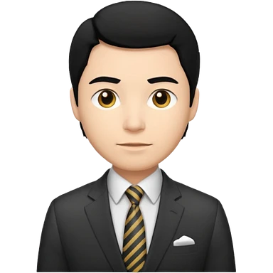 Japanese business man with light skin tone and black hair, wearing black suit emoji
