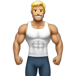 Muscular man with huge arms brown hair wear a red shirt and blue overalls emoji
