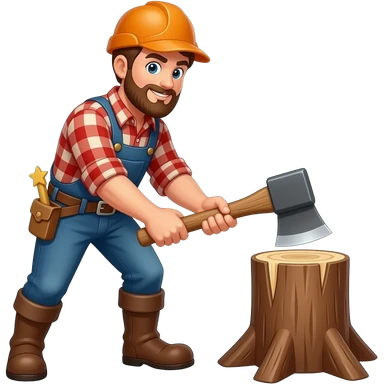 young white man lumberjack with beard blond hair chopping firewood emoji