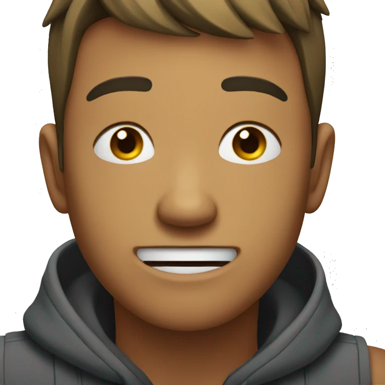 A man holding neck with both hands the hands are crosed and he is like crying smiling and he is angry emoji