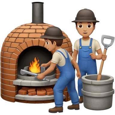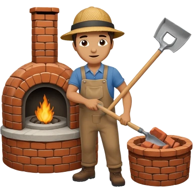 man loading shovel into round brick oven three quarters view emoji