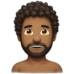 black beard happy shirtless man waking up out of bed stretching arms with sunshine in the back emoji