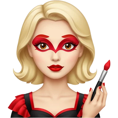 blonde teenager hair in French braids blue eyes doing make up emoji