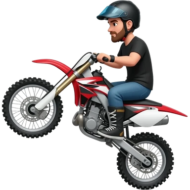 Man doing wheelie on red black & white offroad motorcycle no centre stand and no beard with helmet on emoji