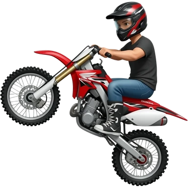 Man doing wheelie on red black and white honda ofroad motorcycle emoji