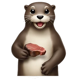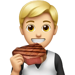 Japanese man holds in hands steak preparing to eat with lovely sight emoji