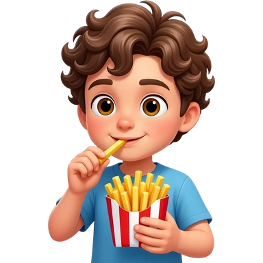 curly boy eating french fries emoji
