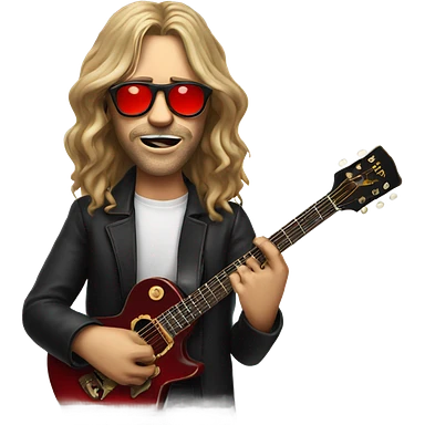 Man face with long hair and circle red lens glasses holding a guiter with a cigarette in his mouth emoji