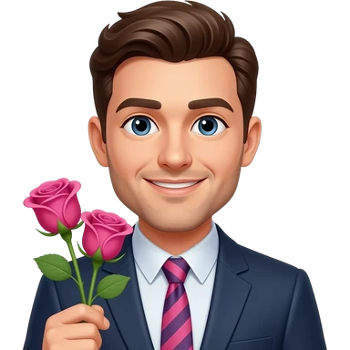 Man, funky cloth, Holding Pink Roses closeup, bust size emoji | AI Emoji Generator