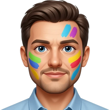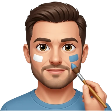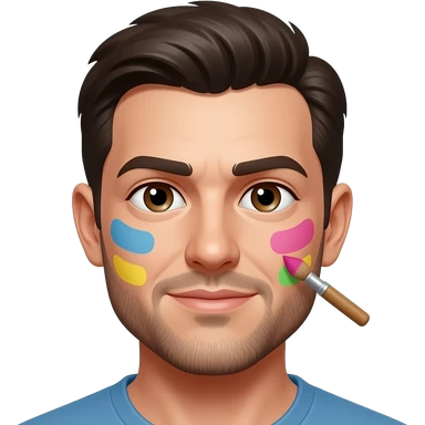 bust man long brown hair brown eyes medium beard white skin with berry juice stained lips grin emoji