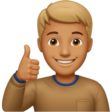 young man in his 20s giving a thumbs up and related to soccer emoji