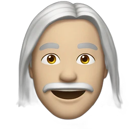 Thin elderly man with light skin. Elongated face with kind expression. Light brown eyes. Thin eyebrows. White goatee and white mustache. Very long, straight fine gray-white hair that reaches shoulders, with some bangs. Slim build. Wearing a blue and beige checkered button-up shirt. emoji