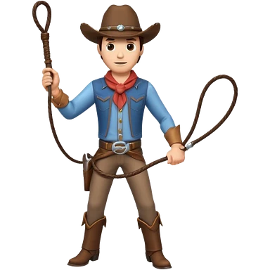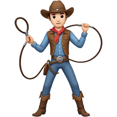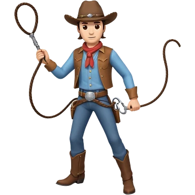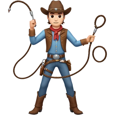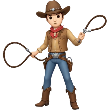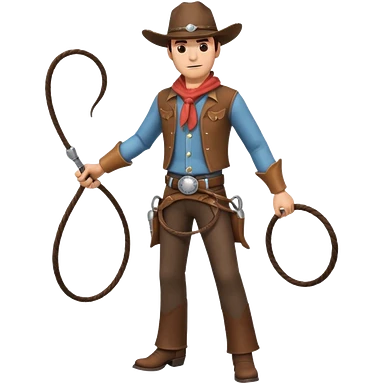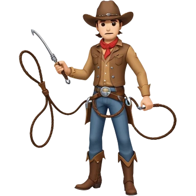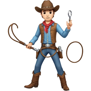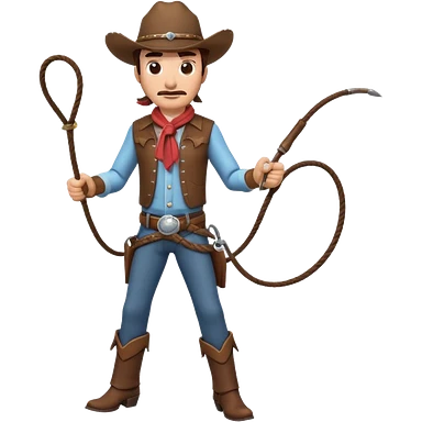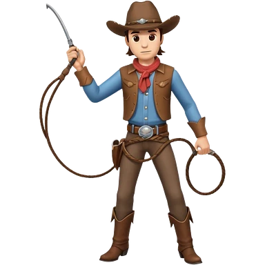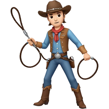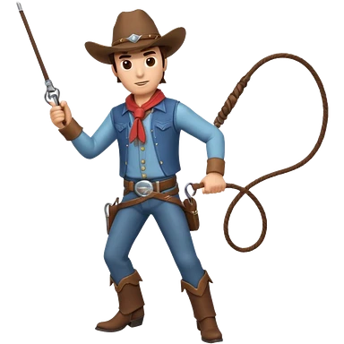 cowboy man holding a whip, dynamic pose, western outfit, adventure vibe, 3D cartoon, mobile game icon style, clean background, no text, no watermark emoji
