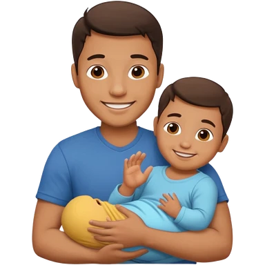 Cute whitr north African man Holding baby girl with big eyes and curly hair emoji