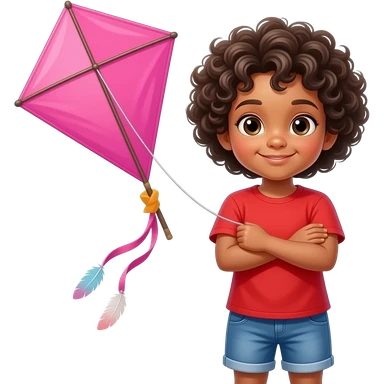 kid holding kite with both hands against chest , front facing closeup emoji