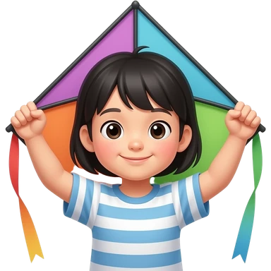 asian kid holding kite with both hands , front facing closeup emoji