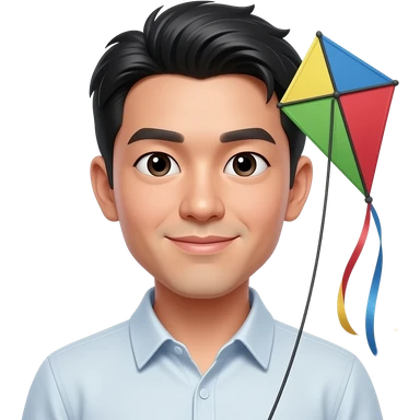 asian man holding kite , front facing closeup emoji