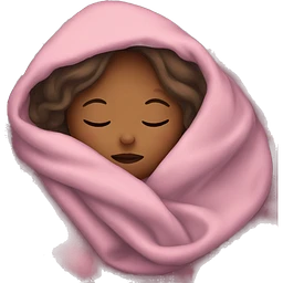 girl brunette inside a blanket sleeping eyes closed with long brown wavy hair and pink pjs emoji