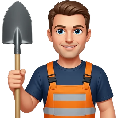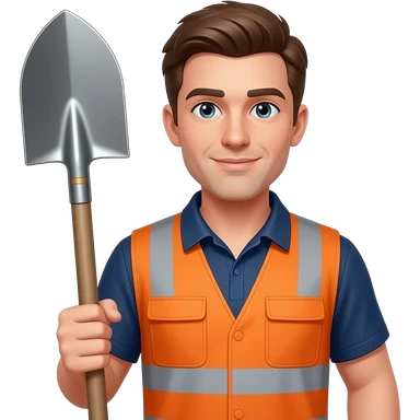 1 man in orange hi-vis overalls standing with a shovel emoji