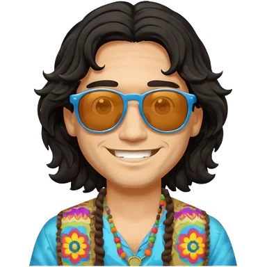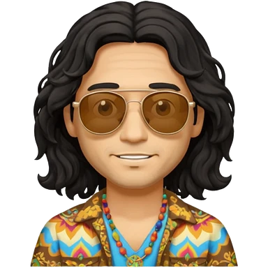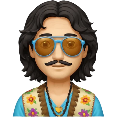 man in hippies clothes, wearing sunglasses, black wavy hair emoji
