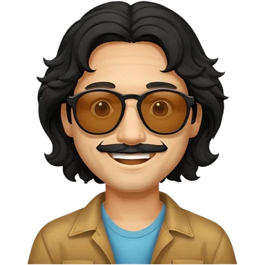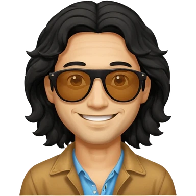 man in hippies type, wearing sunglasses, black wavy hair emoji | AI Emoji Generator