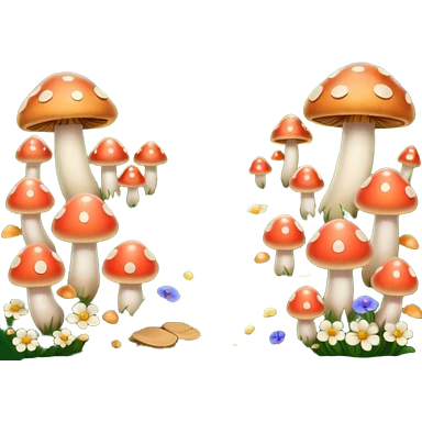 Una pradera con muchas setas y hadas emoji