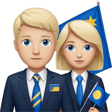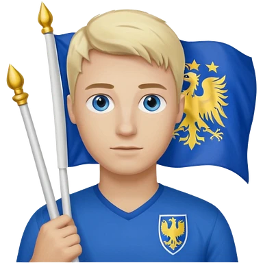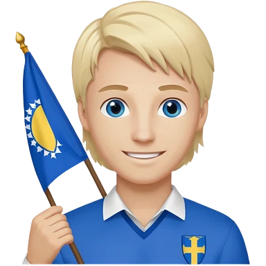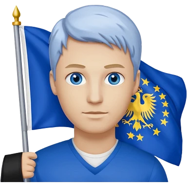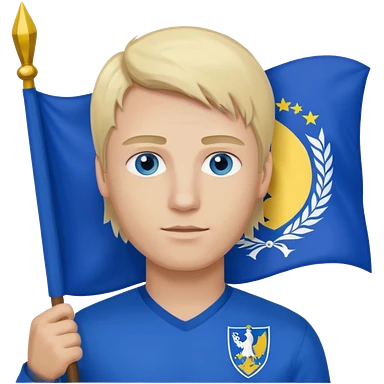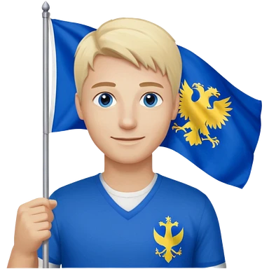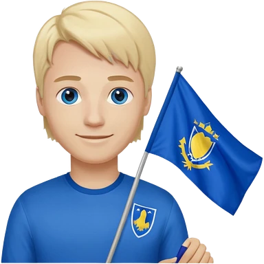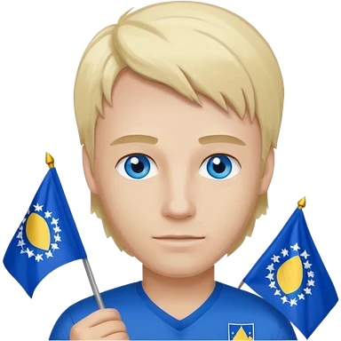 Create a man with bosnia flagg in his hand with blue eyes blond here emoji