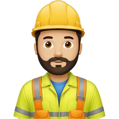 man with dark hair and beard and yellow hi vis overalls emoji