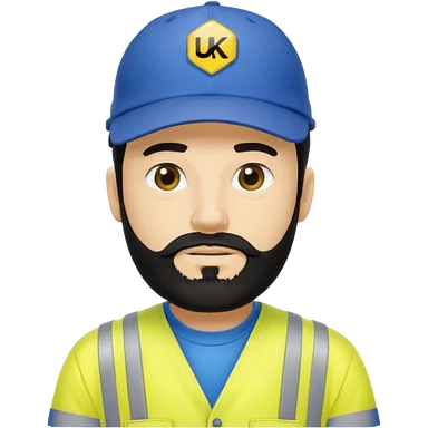Man in yellow hi vis overalls, with black hair and full beard, with blue baseball cap saying ukpn emoji
