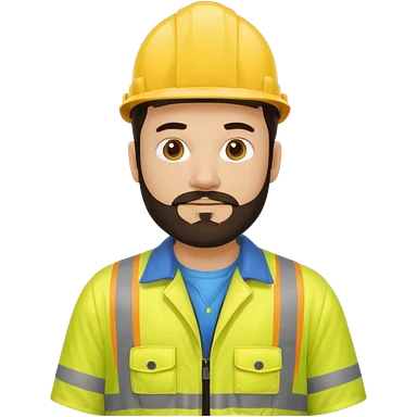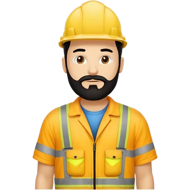 Man in yellow hi vis overalls, with black hair and full beard emoji | AI Emoji Generator