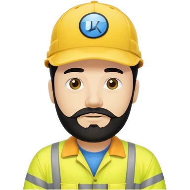 Man in yellow hi vis overalls, with black hair and full beard emoji