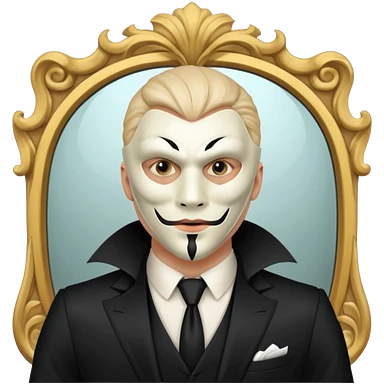 Man killer on mask in mirror behind woman emoji | AI Emoji Generator